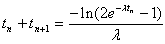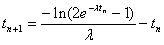 Knowing the value of tn and tn+1, via trial-and-error method, we can solve for the disintegration constant, l.