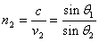 If the incoming photon is travel as the speed of light, the refraction index of medium 1 is equal to unity. Hence, the refraction index of medium 2 is