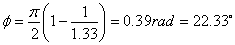 Water has the refraction index of n2 = 1.33. When photon enters from the vacuum medium into the water medium, from eq. WD.2.3, the deform angle is