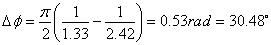 Water and Diamond has the refraction index of n1 = 1.33 and n2 = 2.42 respectively. When photon enters from water medium to diamond medium, from eq. WD.2.4, the change of deform angle is