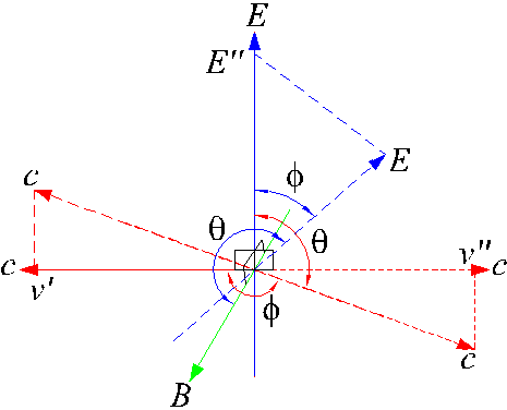 The component v’’ is the reflected mirror image of component v’. From eq. WC.2.10 and figure WC.2.2, the reflected photon produces a mirror image at the planar of EB. When the photon is reflected, it follows the original vectors of the photon as shown by figure WC.2.1, where B2v = E x B … eq. WC.2.1